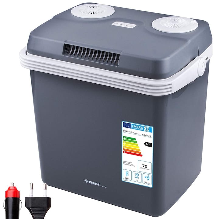 First Austria vine cu o ladă frigorifică ce pare construită special pentru cei care vor ceva solid, dar nu colosal. Cu o capacitate brută de 32 litri (în jur de 25L utili), e suficient de încăpătoare pentru o familie în deplasare, dar și destul de compactă pentru a încăpea lejer într-un portbagaj mediu.