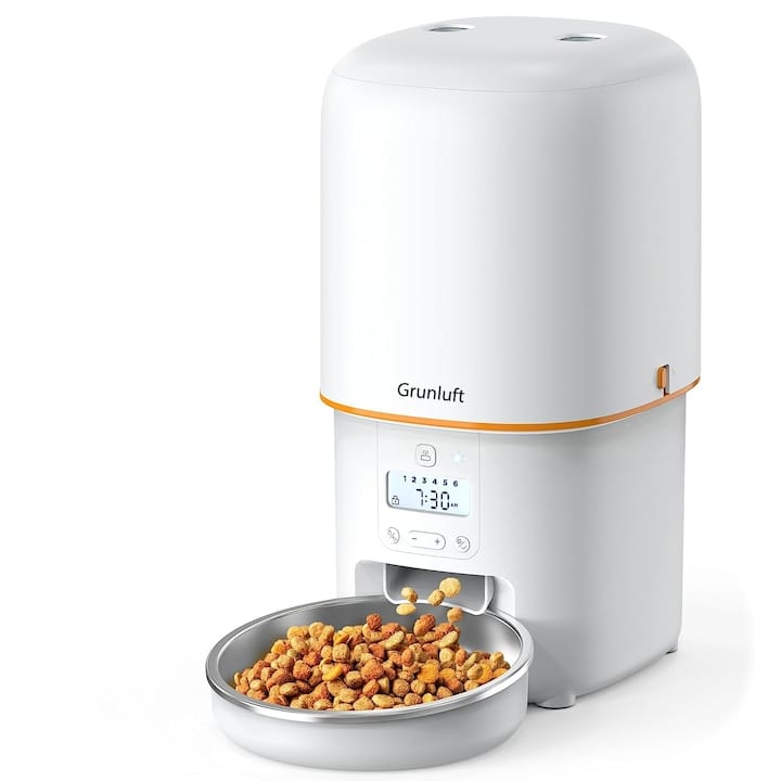 Dacă vrei un hranitor automat simplu, fără aplicaţii complicate, dar care să facă exact ce ai nevoie, modelul Grunluft F02 4L e o opţiune solidă. Cu rezervor de 4 litri, vas din inox şi alimentare duală (priză + baterii), te scuteşte de grija reumplerilor zilnice şi merge chiar dacă pleci câteva zile.