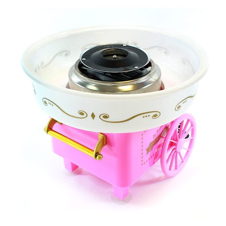 Un model mai economic, ideal dacă vrei să experimentezi cu vată de zahăr acasă fără să riști mult, 400 W, bol de 25 cm, roz, simplu de folosit.