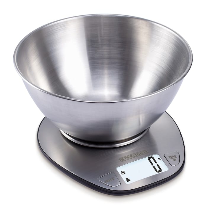 Genul de cântar care arată a ustensilă serioasă și chiar e. Heinner HKS-5SS vine cu bol metalic inclus, e ușor de utilizat, e stabil și are un display simplu, dar eficient. Ideal dacă vrei să ai totul „la pachet” și nu vrei să cauți bol separat prin dulap.