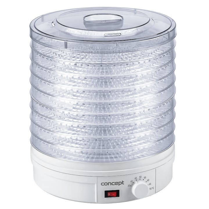 Dacă vrei spațiu serios de uscare, dar fără să sari în zona profesională, Concept SO1020 este un candidat solid. Cu 9 tăvi rotunde și un diametru generos de 32 cm, e ideal pentru cei care vor să deshidrateze mai multe tipuri de alimente simultan, în cantități mai mari.