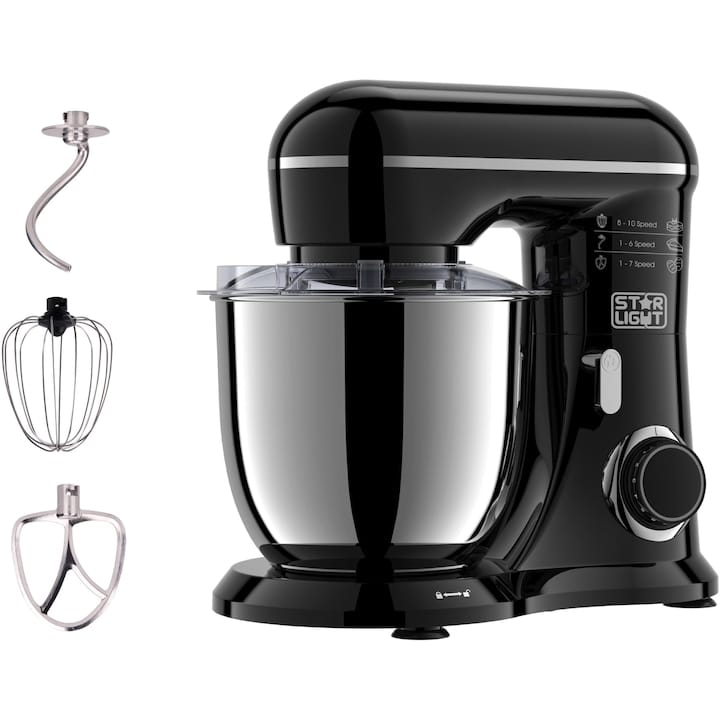 - Între 200 și 500 lei – Aici găsești mixere cu bol planetar de bază, cu puteri de aproximativ 800-1000W, boluri de 3-4 litri și cele mai necesare accesorii. Sunt ideale pentru uz ocazional, rețete simple și porții mici.