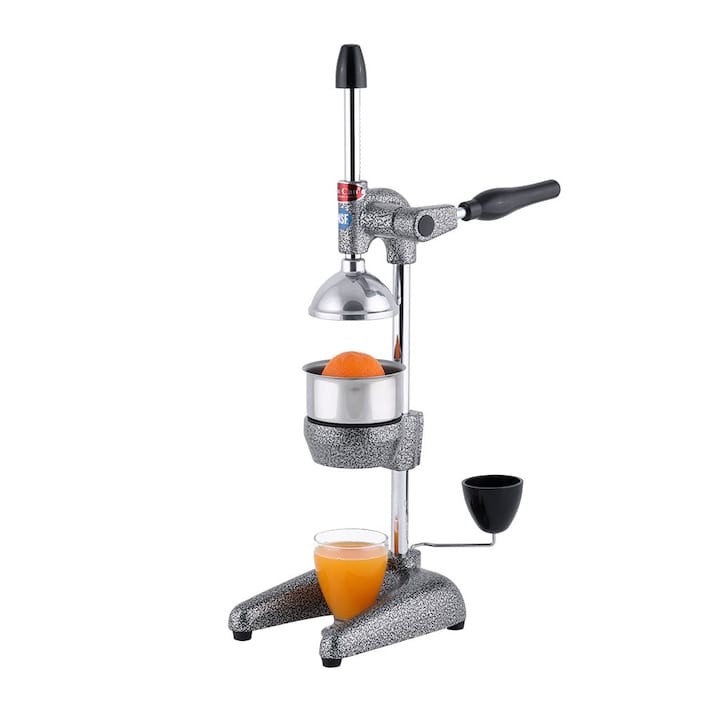 Acest model este o presă manuală simplă și robustă, foarte populară în restaurante, dar folosită tot mai des și acasă. Funcționează pe bază de pârghie, ceea ce permite stoarcerea citricelor cu efort redus comparativ cu storcătoarele manuale clasice. Diametrul sitei este ceva mai mic decât la modelul mai mare din gamă, ceea ce îl face potrivit pentru portocale obișnuite, lămâi sau lime. Construcția metalică solidă îl face potrivit pentru utilizare frecventă.