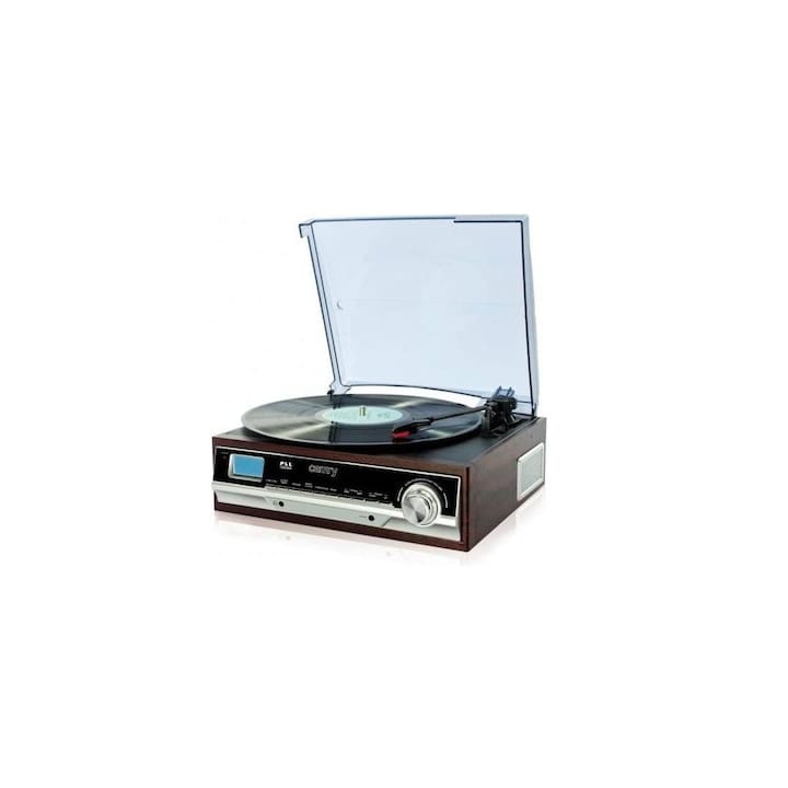 Camry (CR 1113)AUX, RCA, AM/FM radio, (earphone out)33⅓, 45, 78 RPMDaSemi‑automat (manual/auto‑stop)7″, 10″, 12″