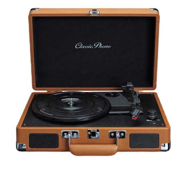 Un pick-up compact, cu look vintage și funcții practice. Are difuzoare integrate, conectivitate clasică și o greutate redusă, ceea ce-l face ușor de mutat dintr-o cameră în alta.
