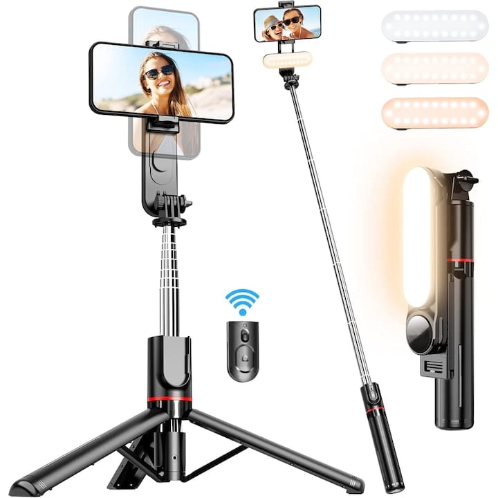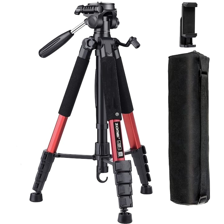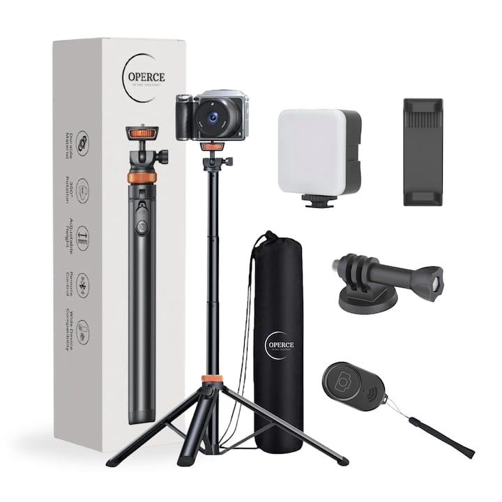 Dacă ai nevoie de un trepied complet, care să vină cu tot ce ți-ai putea dori la nivel de accesorii, OPERCETM Premium e candidatul serios din listă. Are o înălțime respectabilă, lumină LED, husă, telecomandă și chiar suport pentru GoPro.