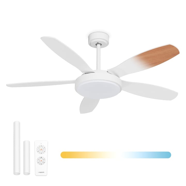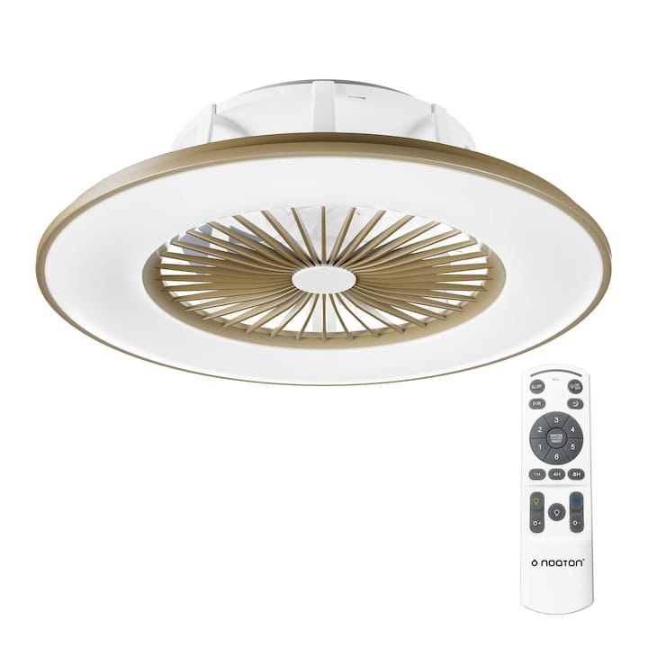 Un ventilator elegant cu diametru mare, 132 cm, care aduce într‑un singur corp funcţii de răcire, iluminare reglabilă şi funcţie reversibilă pentru iarnă. Perfect pentru livinguri sau spaţii generoase unde vrei nu doar vânt, ci şi atmosferă bună.