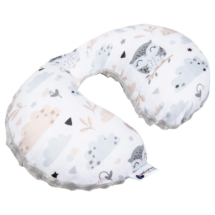 Gândită pentru drumuri lungi și scurte, această pernă mică e ușor de strecurat în bagaj. Materialul moale din bumbac și minky îi ține pe cei mici confortabil chiar și în mașină sau avion.