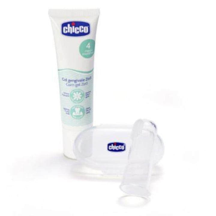 | Chicco | Set | 4 luni+ | Gel calmant + perie silicon | Kit igienă și masaj | Aplicație ușoară |
