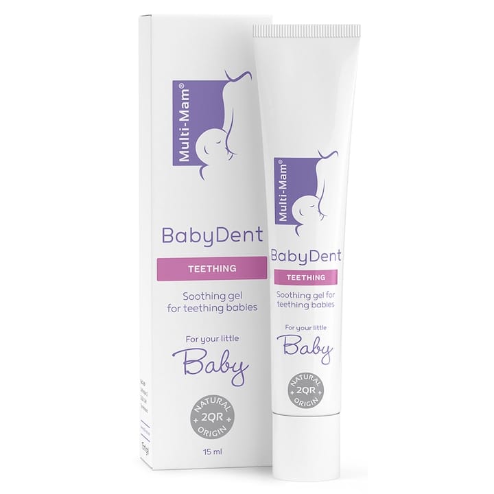 Multi-Mam BabyDent este genul de gel pe care îl poți ține la frigider pentru un efect răcoritor instant, ceea ce nu e deloc rău în toiul crizelor de dinți. Se evidențiază prin formula sa blândă, fără conservanți sau adaosuri inutile, și pentru faptul că nu are gust deranjant, lucru apreciat de majoritatea bebelușilor.