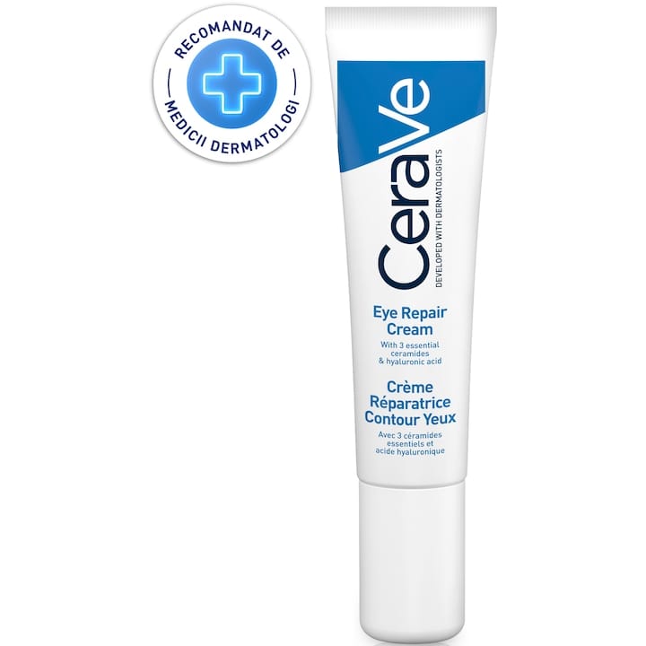 CeraVe e alegerea de încredere pentru pielea sensibilă, inclusiv pentru cei care nu tolerează prea multe ingrediente sau parfumuri. Cu o formulă minimalistă, dar eficientă, această cremă ajută la repararea barierei cutanate, menține hidratarea și susține regenerarea pielii din jurul ochilor.