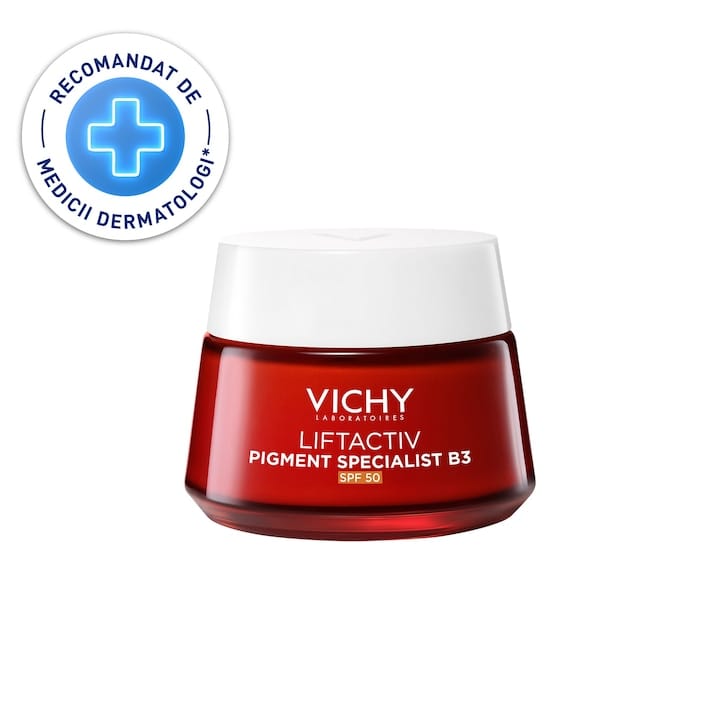 | Vichy (Liftactiv Specialist) | Toate tipurile | Niacinamidă, peptide, vitamina C | Da, SPF 50 | 50 | Uniformizare, protecție UV, antirid |