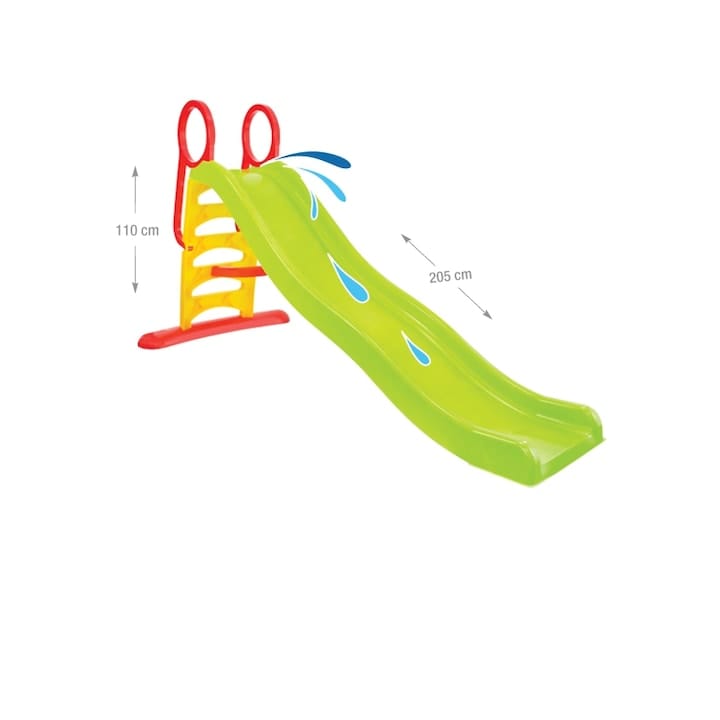 Un model cu o alunecare generoasă, potrivit pentru curți mari sau spații exterioare dedicate. Are un design clasic din plastic, cu structură suficient de stabilă pentru a suporta utilizări frecvente.