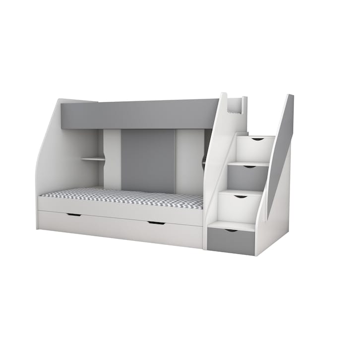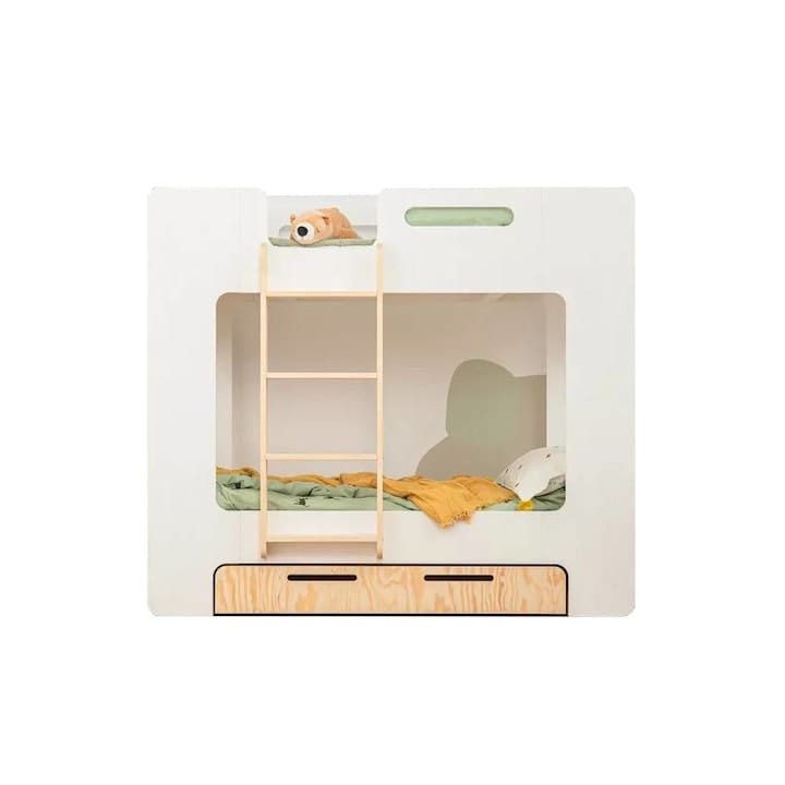 Kidoocrafts Cube e gândit pentru camere mici, cu accent pe utilitate și siguranță. Are un sertar încăpător pentru lenjerie sau jucării, iar finisajul alb îl face să se potrivească ușor în orice cameră de copil. Scara laterală este stabilă și accesibilă și pentru copii mai mici.
