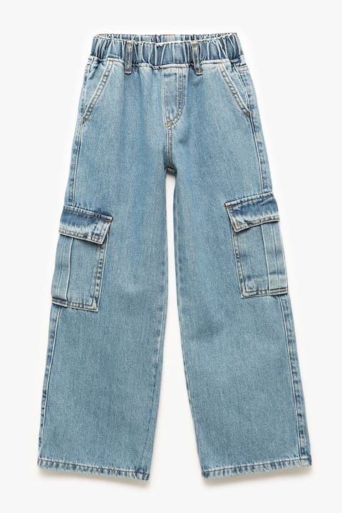 Acești blugi pentru copii de la Koton sunt genul care spune „lasă‑mă să mă joc”. Croiala amplă le permite copiilor să se miște fără restricții, iar talia elastică face îmbrăcarea mult mai ușoară dimineața. Buzunarele cargo oferă spațiu adițional pentru mici jucării sau alte „comori” care apar peste zi, iar denimul clar le conferă un look casual cool, perfect pentru joacă sau excursii.