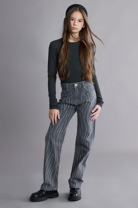 Dacă vrei ceva cu un pic de „sparkle”, modelul ăsta cu aplicații din strasuri de la LC Waikiki poate să fie surpriza plăcută din rândul blugilor de copii. Croiala dreaptă îi face ușor de purtat, iar strasurile adaugă un detaliu jucăuș fără să exagereze.
