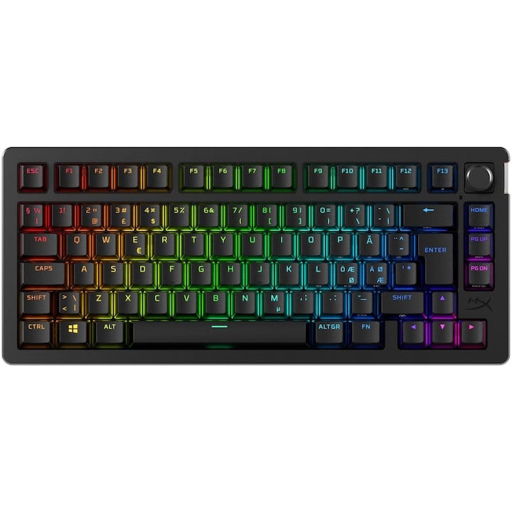 HyperX (Alloy Rise 75) | HyperX Red Linear | 75% | Până la 80h cu RGB / 1500h fără RGB | RGB per-key | Bluetooth, 2.4GHz, USB-C |