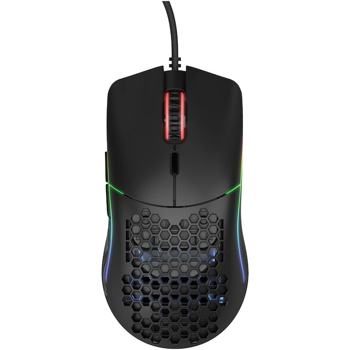 - Glorious Model O – Un mouse ultra-ușor cu iluminare RGB de calitate, integrată discret în designul perforat. Poți sincroniza culorile și efectele cu restul setupului tău, pentru un aspect curat și profesionist, dar în același timp dinamic.