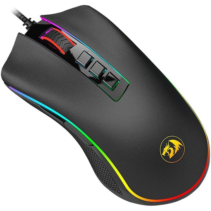 - Redragon Cobra V2 – Oferă iluminare RGB spectaculoasă și personalizabilă, cu multiple efecte vizuale. Poți ajusta culorile în funcție de preferințe sau setări DPI, ceea ce adaugă un plus de feedback vizual în timpul jocului.