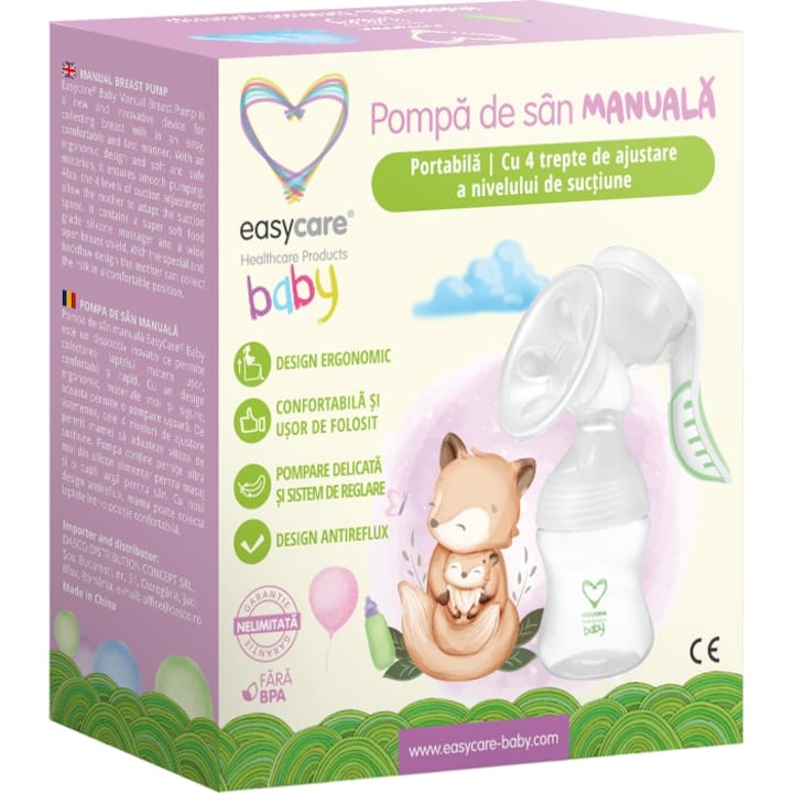 | EasyCare Baby (J203) | Fără BPA | 120-150 ml | Manuală, 4 niveluri | Ușor | Mică, portabilă |
