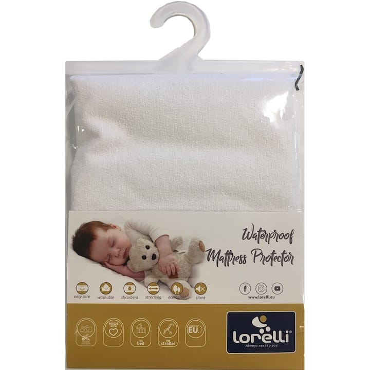 Protecție pentru saltea cu suprafață de frotir, foarte populară pentru pătuțurile de 70×140 cm. Îmbină confortul bumbacului cu eficiența unui strat impermeabil subțire și are margini elastice care acoperă perfect salteaua.
