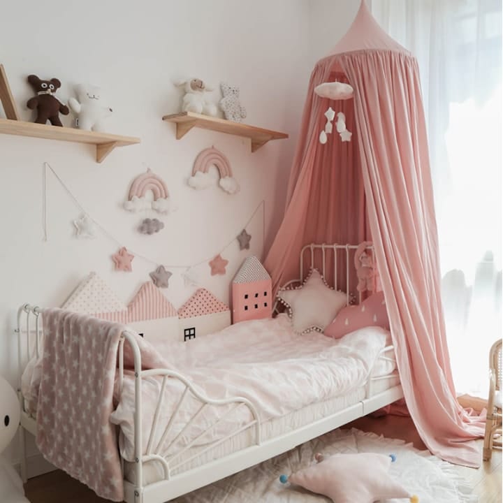 Un baldachin simplu poate deveni rapid centrul atenției în camera copilului dacă adaugi câteva accesorii potrivite. Detaliile mici pot face spațiul mult mai prietenos și plin de farmec, atât pentru copil, cât și pentru părinți.