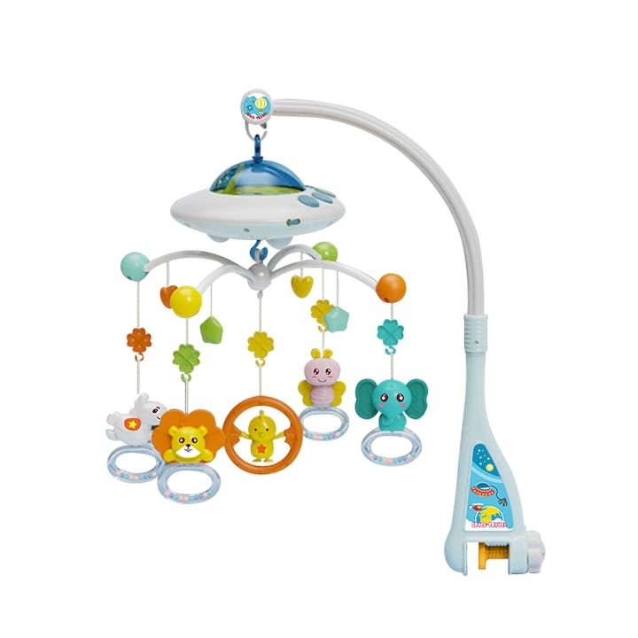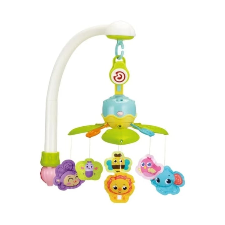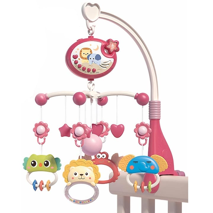 - Mișcarea lentă a caruselului stimulează coordonarea ochi–mână, mai ales când micuțul încearcă să atingă sau să urmărească jucăriile.