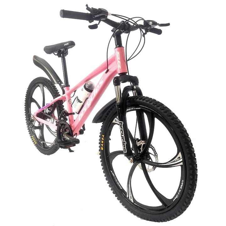 - Sub 1.000 lei – Poți găsi biciclete simple, cu cadru din oțel, 6-18 viteze, transmisii basic, frâne tip V-Brake și dotări minimale, ideale pentru plimbări scurte sau navetă.