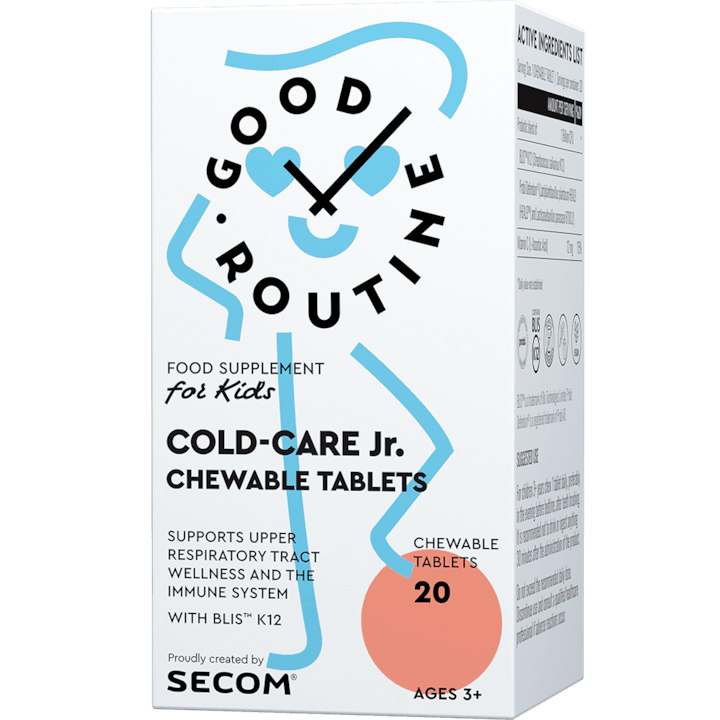 Cold Care JR este destinat în special perioadelor de viroze sau schimbări de sezon. Tabletele masticabile conțin vitamina C, D3, zinc, dar și extracte naturale din plante, într-o formulă dedicată susținerii imunității celor mici, fără să fie greu de administrat.