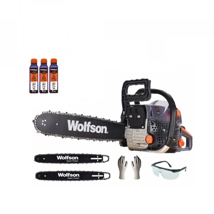 Un pachet atractiv, deoarece vine cu două lame, două lanțuri, echipament de protecție și uleiuri incluse. Motorul de 52 cc oferă suficientă putere pentru gospodărie, iar accesoriile suplimentare îl fac convenabil.